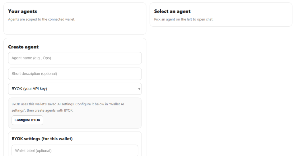 - Wallet = your agent identity: Agents are scoped to the wallet you connect, not an email login.
